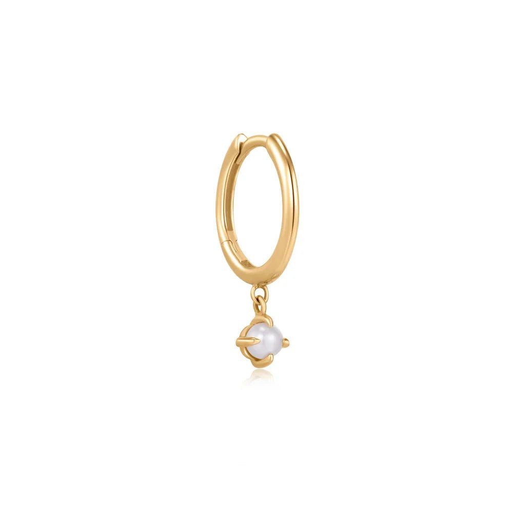 This fanciful earring features a shimmering white pearl that is artfully set on a classic, gold huggie hoop. This ethereal hoop is the perfect fine jewelry accessory that combines elegance with a look that is right on-trend. Wear this lightweight, versatile hoop earring to leave a lingering impression of fashion-forward style.