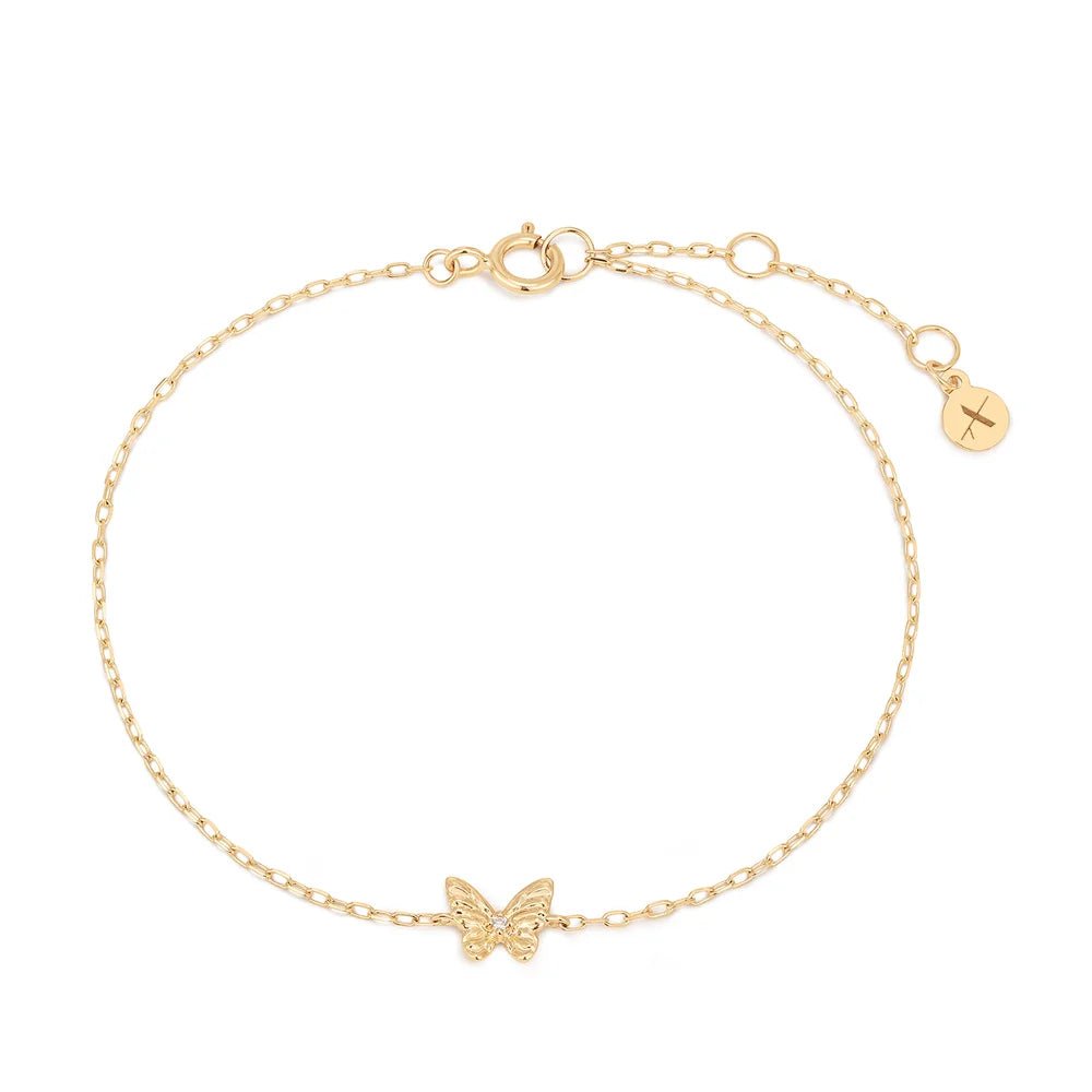 The Fable bracelet is a delicate and whimsical piece, featuring a graceful butterfly adorned with sparkling lab-grown diamond accents. It symbolizes transformation and beauty, offering a sustainable, elegant touch to any look. Perfect for those who cherish both nature-inspired design and ethical luxury.