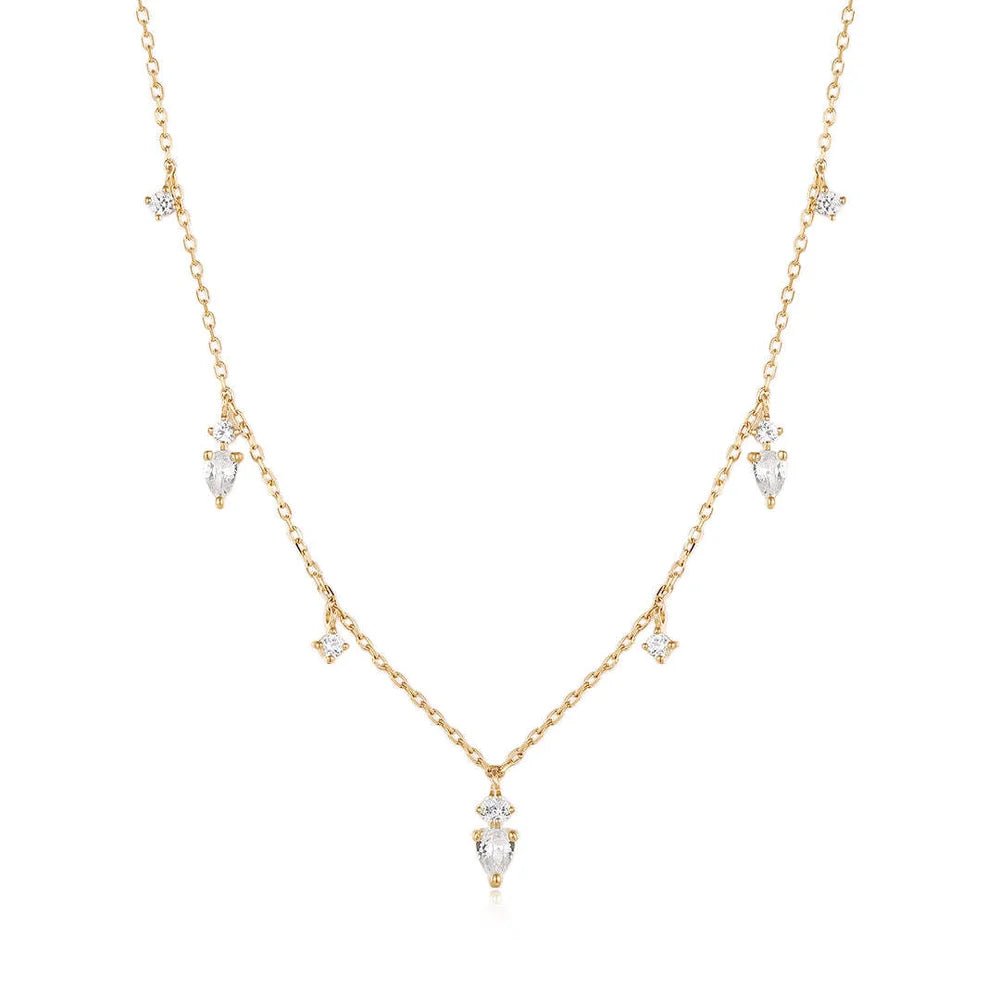 This beautiful pear and round white sapphire necklace can be dressed up or down!
